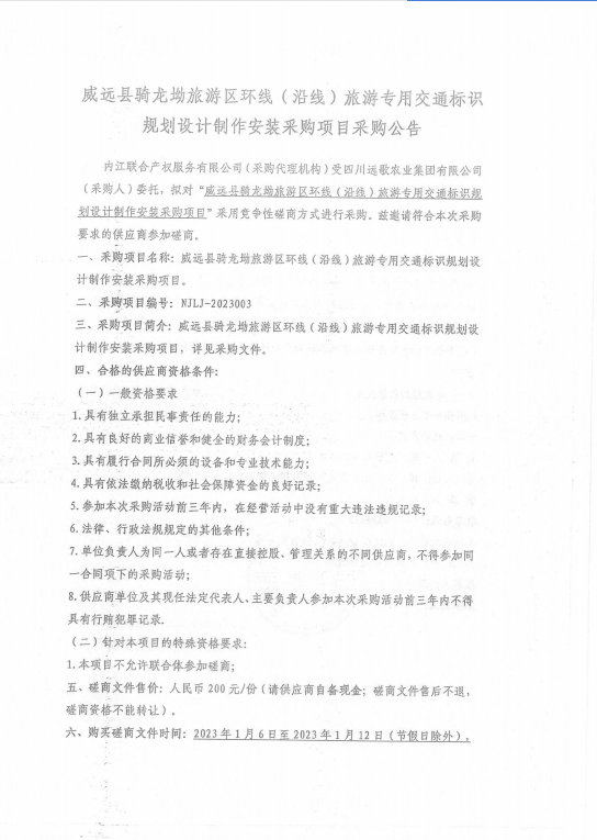 威远县骑龙坳旅游区环线(沿线)旅游专用交通标识规划设计制作安装采购项目采购公告