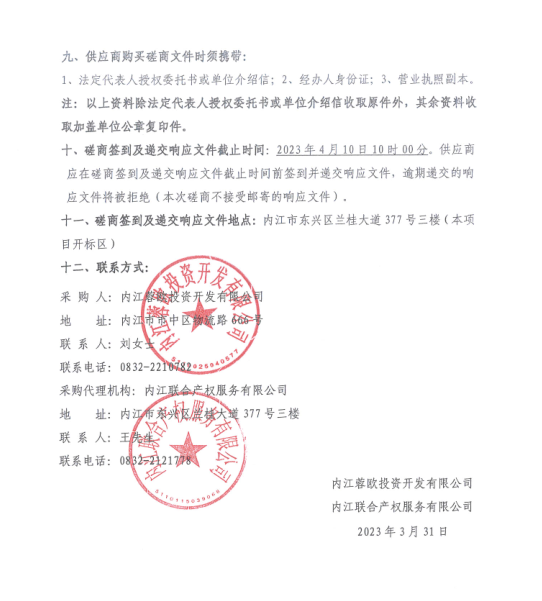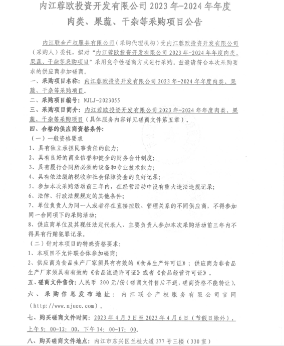 内江蓉欧投资开发有限公司2023年-2024年年度肉类、果蔬、干杂等采购项目公告