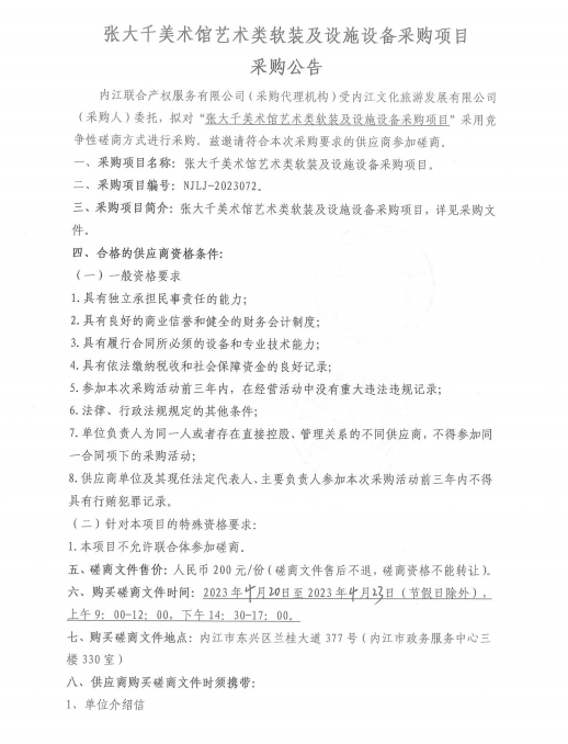 张大千美术馆艺术类软装及设施设备采购项目采购公告