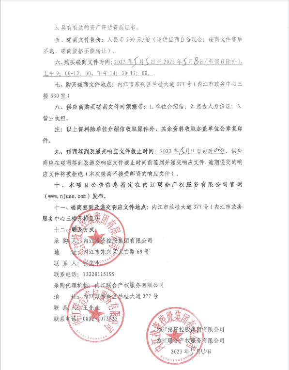 内江投资控股集团有限公司主体信用评级服务采购项目(第三次)采购公告