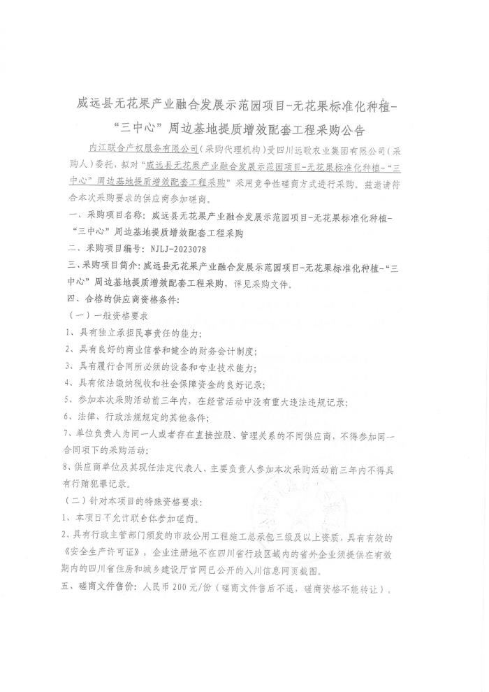 威远县无花果产业融合发展示范园项目-无花果标准化种植-“三中心”周边基地提质增效配套工程采购公告