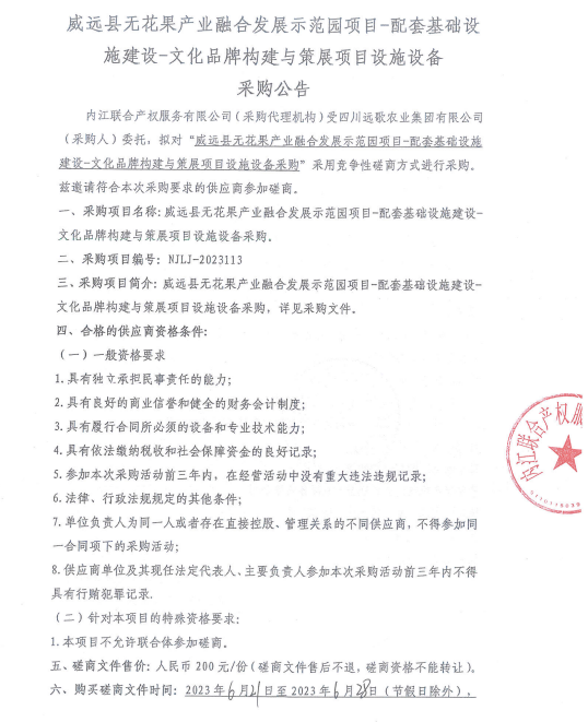 威远县无花果产业融合发展示范园项目-配套基础设施建设-文化品牌构建与策展项目设施设备采购公告