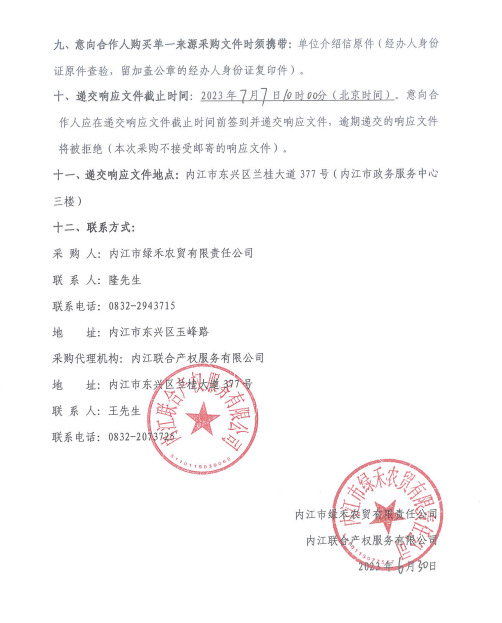 内江市绿禾农贸有限责任公司购买生猪养殖场(第七批次)项目采购公告