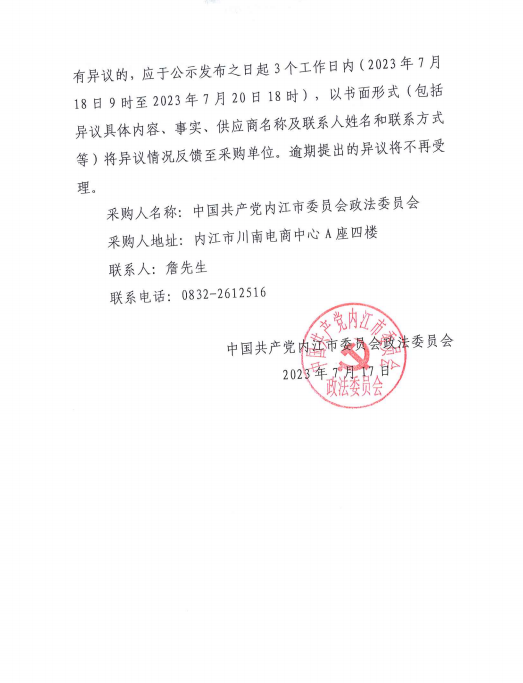 内江市政法部门2023年网络设施共建信息资源共享项目的征求意见公示