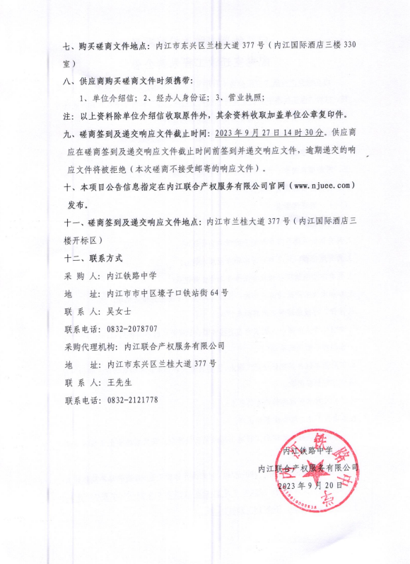 内江铁路中学改扩建项目配电室迁改工程采购公告