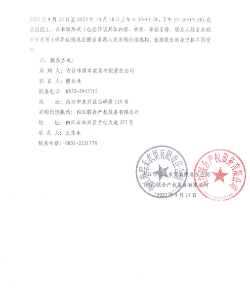 内江市绿禾农贸有限责任公司购买生猪养殖场 (第八批次)项目采购公告