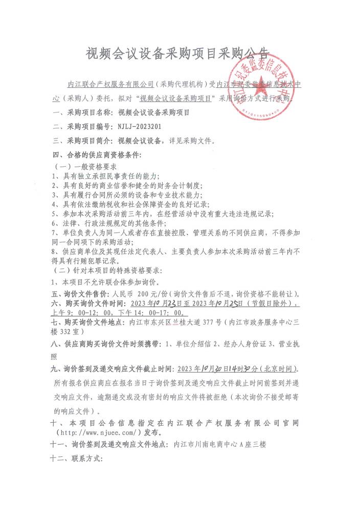 视频会议设备采购项目采购公告