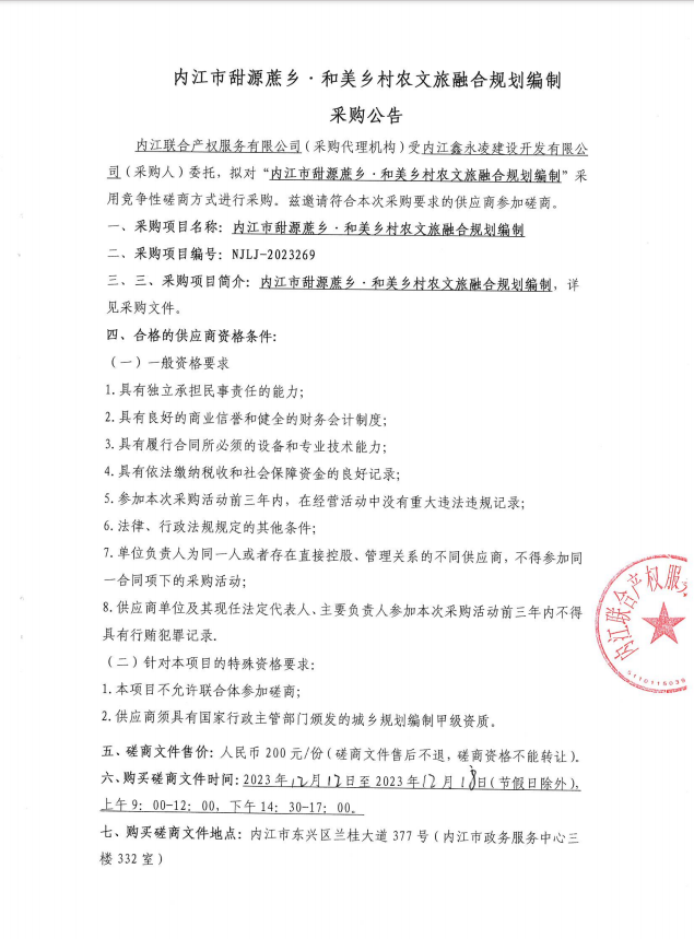 内江市甜源蔗乡·和美乡村农文旅融合规划编制采购公告