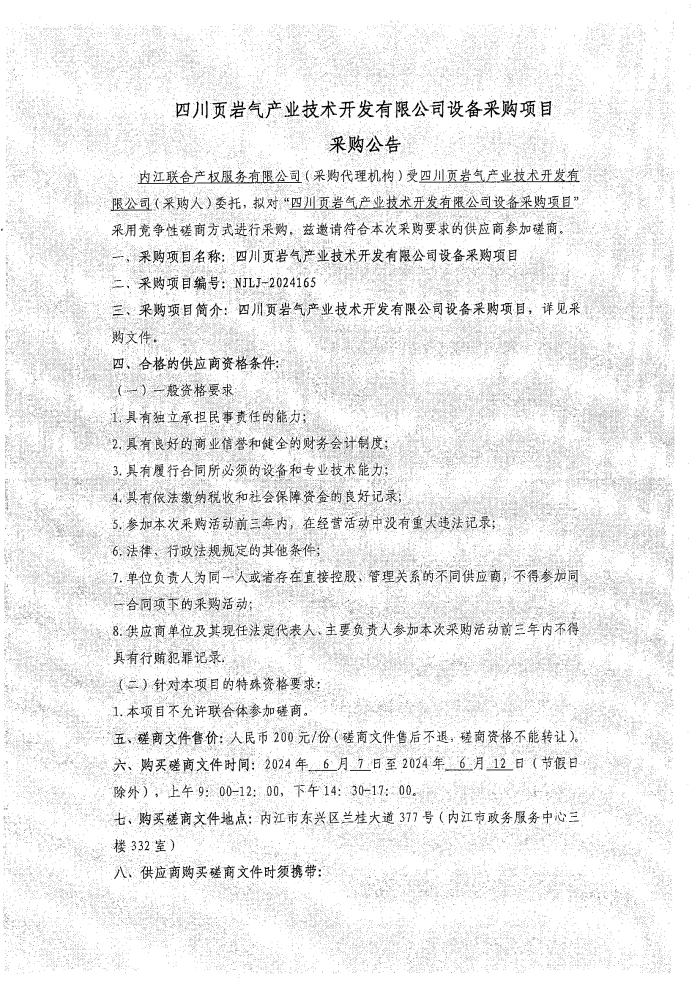 四川页岩气产业技术开发有限公司设备采购项目采购公告