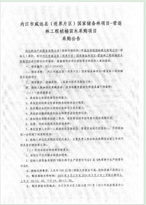 内江市威远县(连界片区)国家储备林项目-营造林工程桢楠苗木采购项目