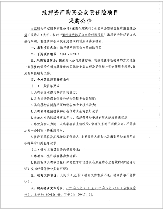 抵押资产购买公众责任险项目采购公告