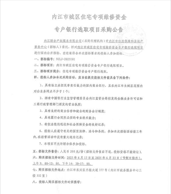 内江市城区住宅专项维修资金专户银行选取项目采购公告