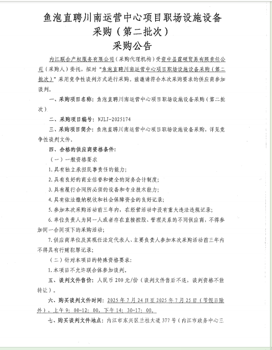 鱼泡直聘川南运营中心项目职场设施设备采购(第二批次)采购公告