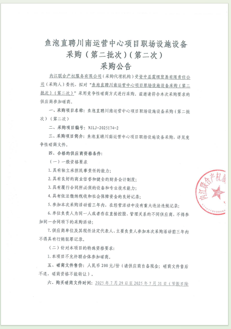 鱼泡直聘川南运营中心项目职场设施设备采购(第二批次)(第二次)采购公告
