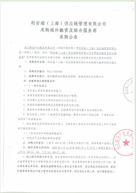 利安瑞(上海)供应链管理有限公司采购域外融资及综合服务商