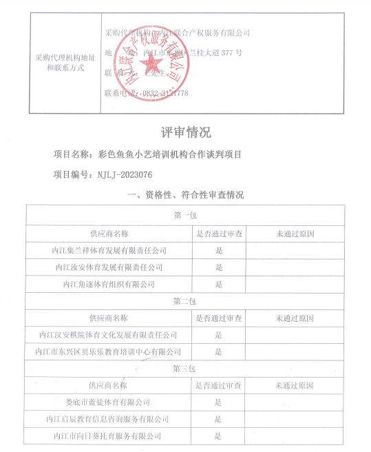 彩色鱼鱼小艺培训机构合作谈判项目结果公告