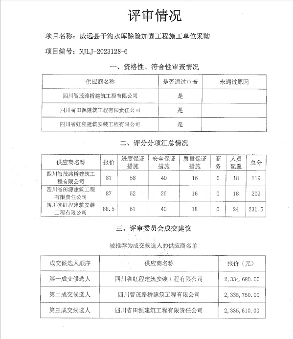 威远县干沟水库除险加固工程施工单位采购结果公示