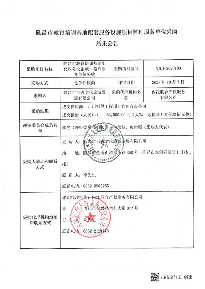 隆昌市教育培训基地配套服务设施项目监理服务单位采购结果公告