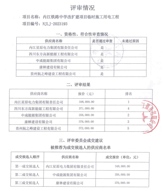 内江铁路中学改扩建项目临时施工用电工程结果公告
