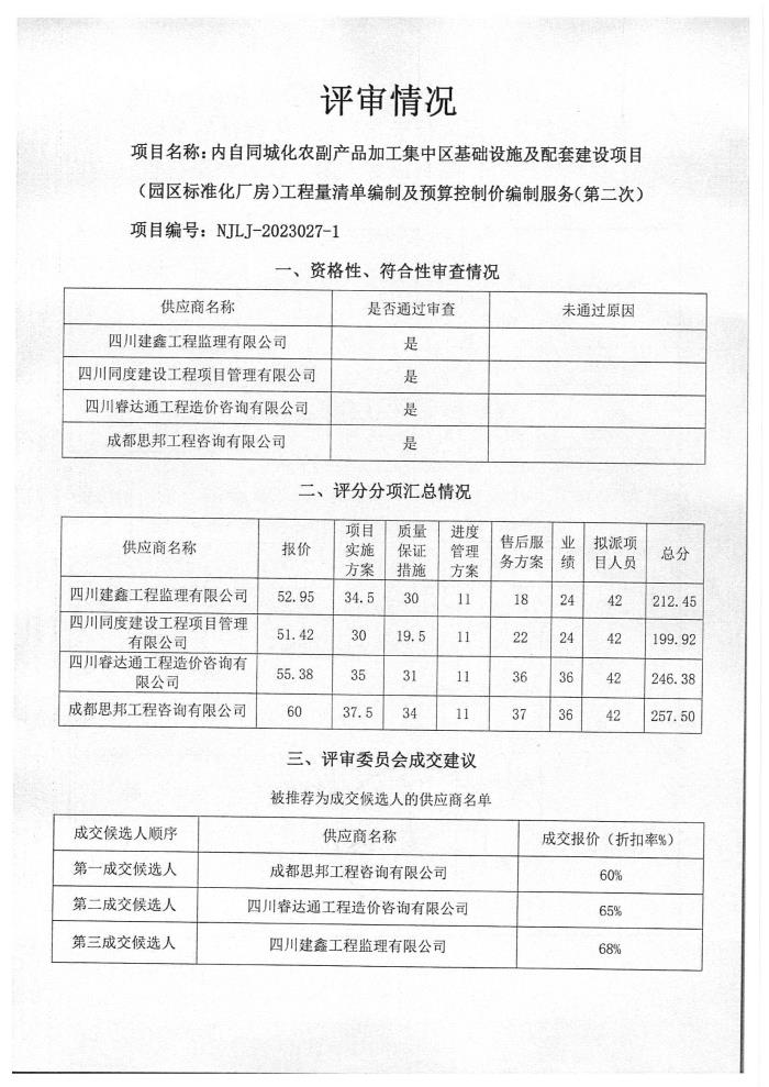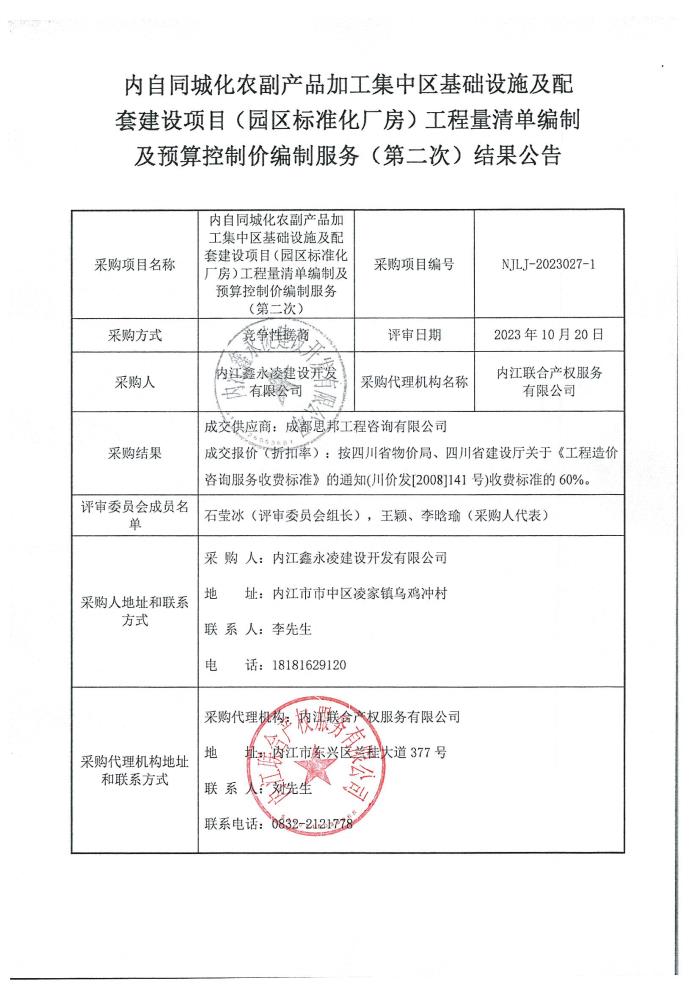 内自同城化农副产品加工集中区基础设施及配套建设项目(园区标准化厂房)工程量清单编制及预算控制价编制服务(第二次)结果公告