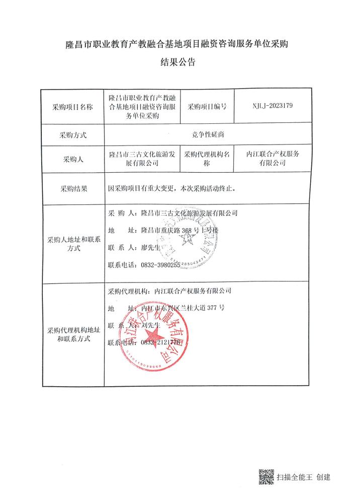 隆昌市职业教育产教融合基地项目融资咨询服务单位采购结果公告