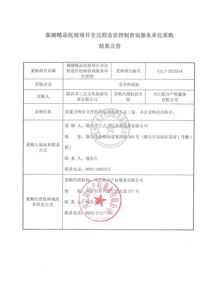 观湖精品民宿项目全过程造价控制咨询服务单位采购结果公告