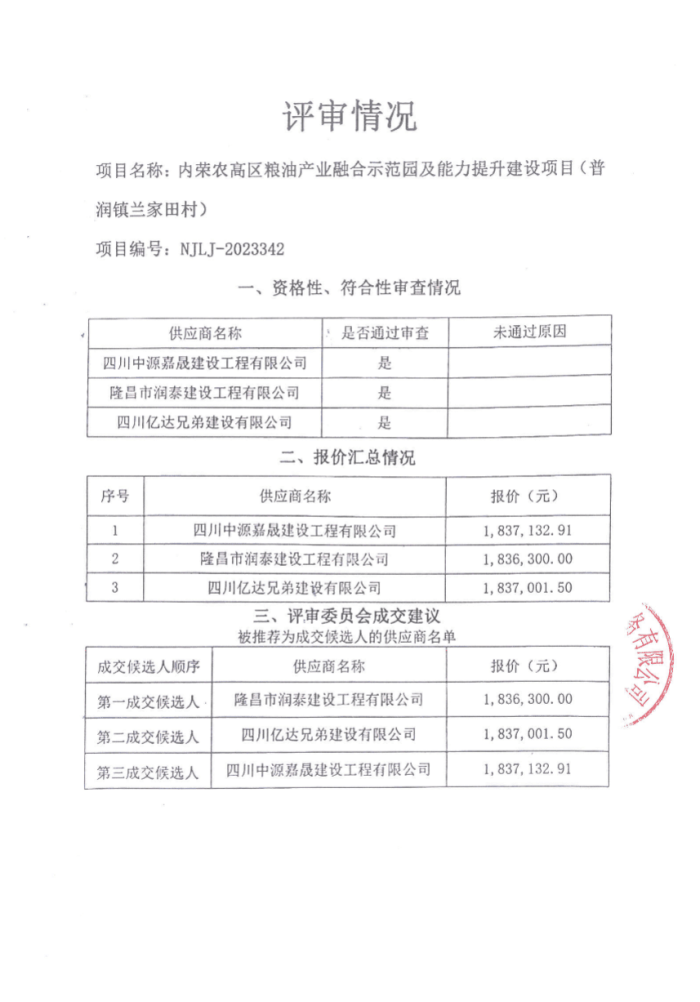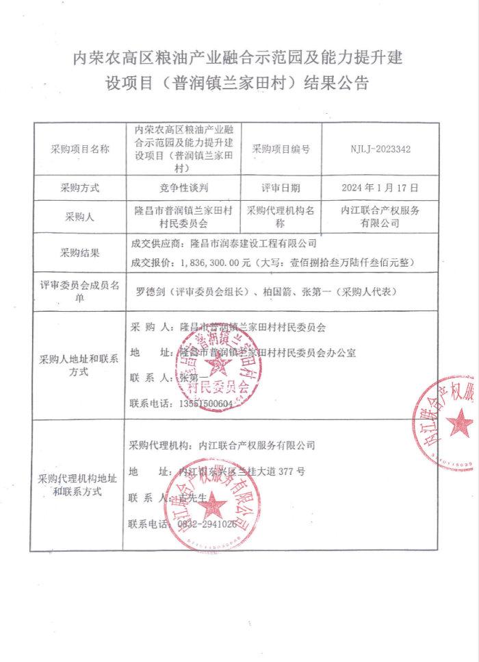 内荣农高区粮油产业融合示范园及能力提升建设项目(普润镇兰家田村)结果公告