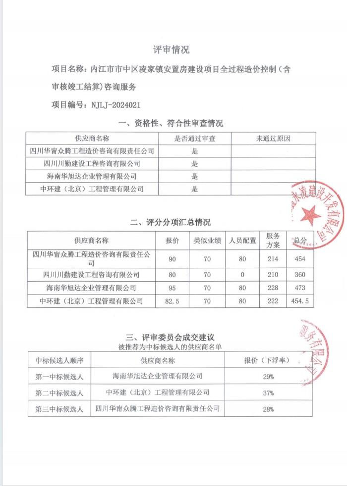 内江市市中区凌家镇安置房建设项目全过程造价控制(含审核竣工结算)咨询服务结果公告