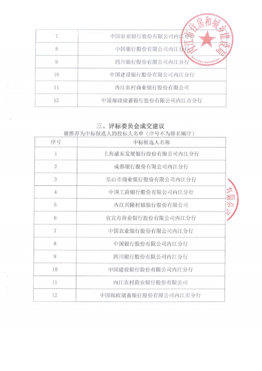 内江市2024-2025商品房预售资金监管银行服务采购项目结果公告