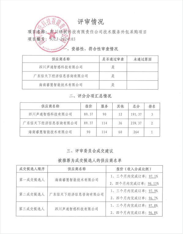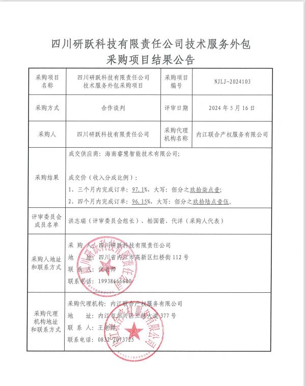 四川研跃科技有限责任公司技术服务外包采购项目结果公告