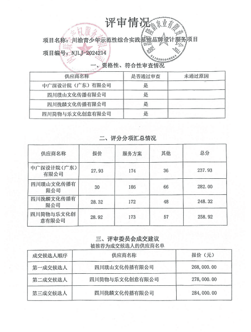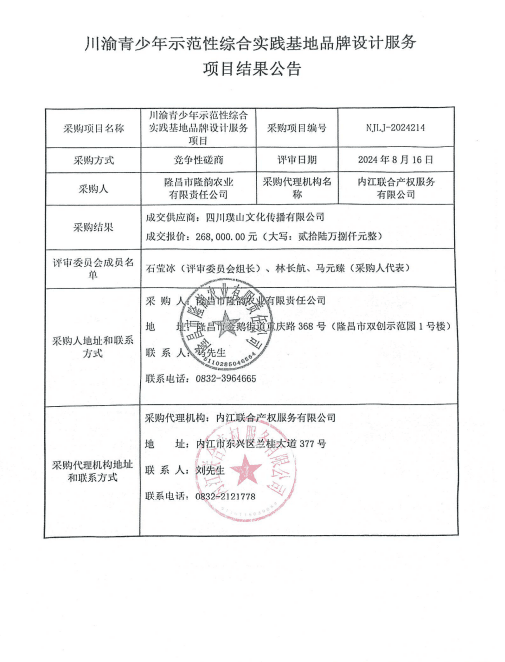 川渝青少年示范性综合实践基地品牌设计服务项目结果公告