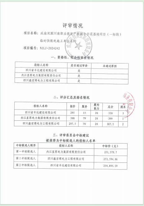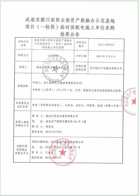成渝双圈川南职业教育产教融合示范基地项目(一标段)临时供配电施工单位采购结果公告