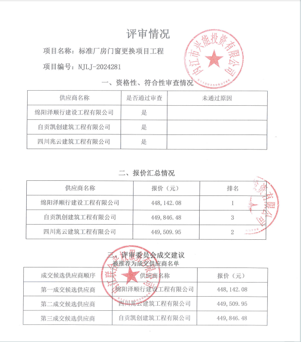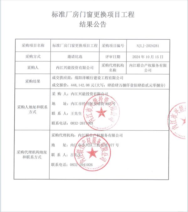 标准厂房门窗更换项目工程结果公告
