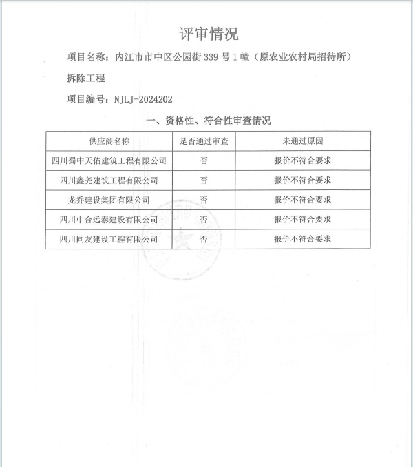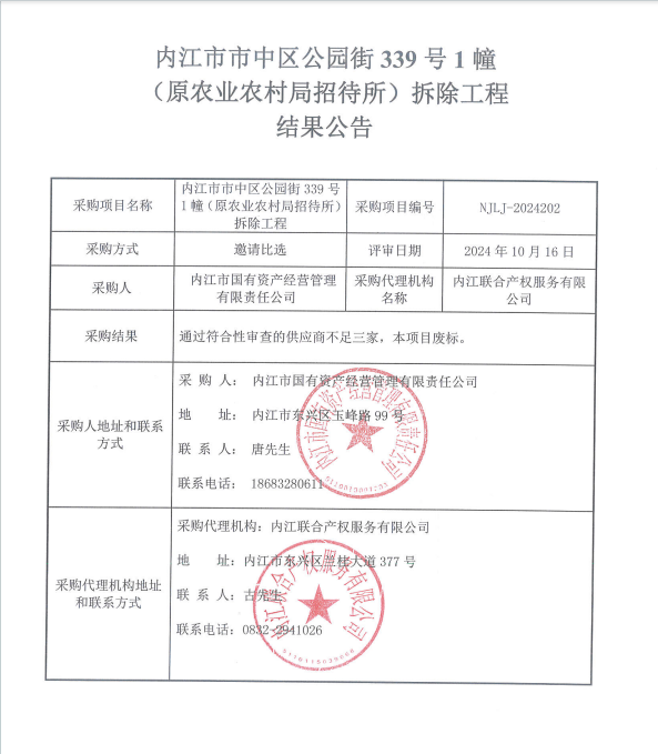 内江市市中区公园街339号1幢(原农业农村局招待所)拆除工程结果公告