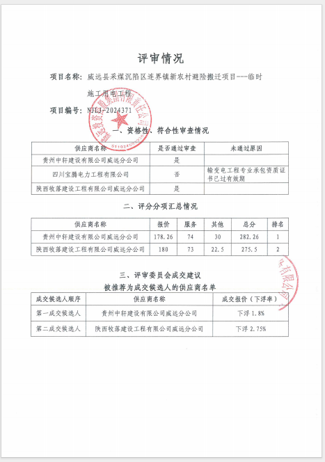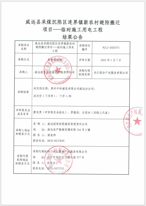 威远县采煤沉陷区连界镇新农村避险搬迁项目---临时施工用电工程结果公告