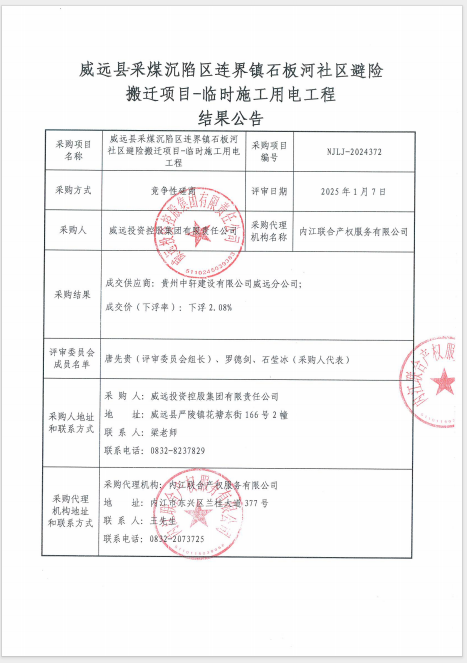 威远县采煤沉陷区连界镇新农村避险搬迁项目---临时施工用电工程结果公告