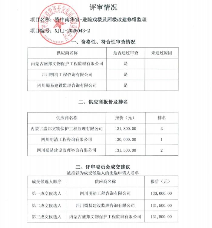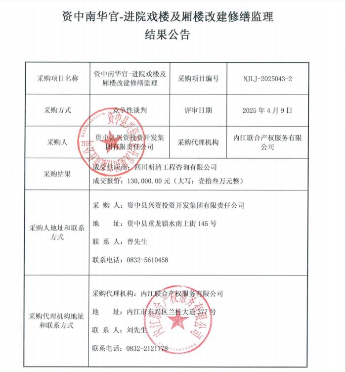 资中南华官-进院戏楼及厢楼改建修缮监理结果公告