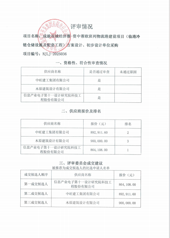 成渝双城经济圈-资中蓉欧班列物流港建设项目(临港冷链仓储设施及配套工程)方案设计、初步设计单位采购结果公告