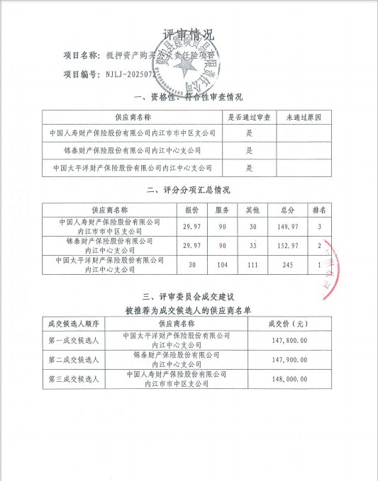 抵押资产购买公众责任险项目结果公告