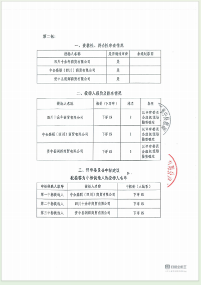 资中县南部片区农村人居环境整治项目材料采购(第四次)结果公告