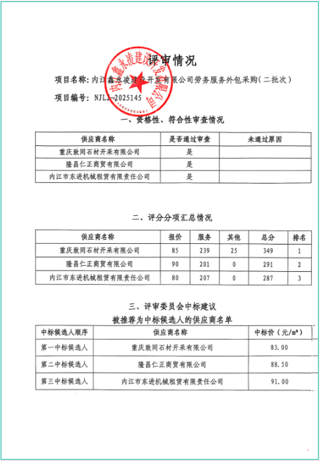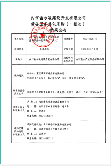 内江鑫永凌建设开发有限公司劳务服务外包采购(二批次)结果公告