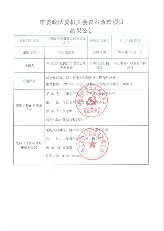 市委政法委机关会议室改造项目结果公告
