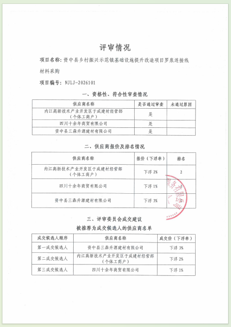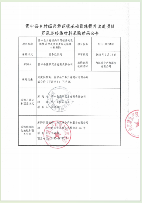 资中县乡村振兴示范镇基础设施提升改造项目罗泉连接线材料采购结果公告